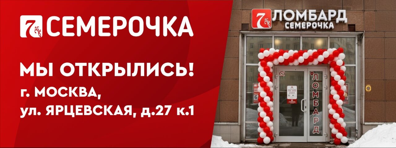 Ломбард Семерочка открылся по адресу: г. Москва, ул. Ярцевская д.27к1, 2 минуты от м. Молодежная (выход №1)